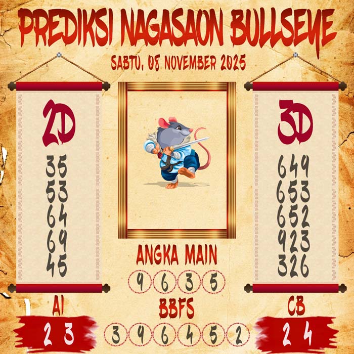 Prediksi Nagasaon Bullseye Sabtu 8 November 2025