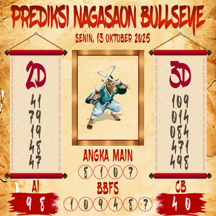 Prediksi Nagasaon Bullseye Senin 13 Oktober 2025
