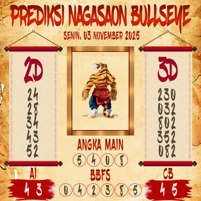 Prediksi Nagasaon Bullseye Senin 3 November 2025