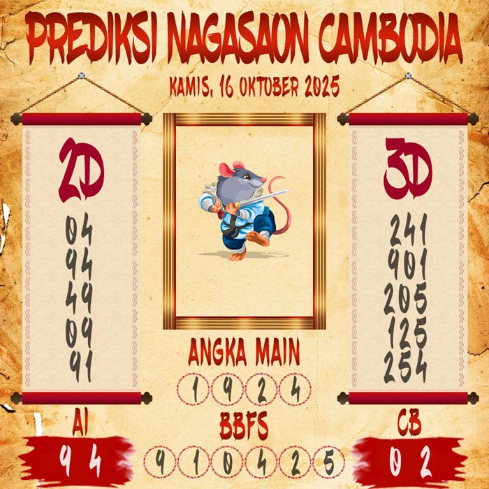 Prediksi Nagasaon Cambodia Kamis 16 Oktober 2025