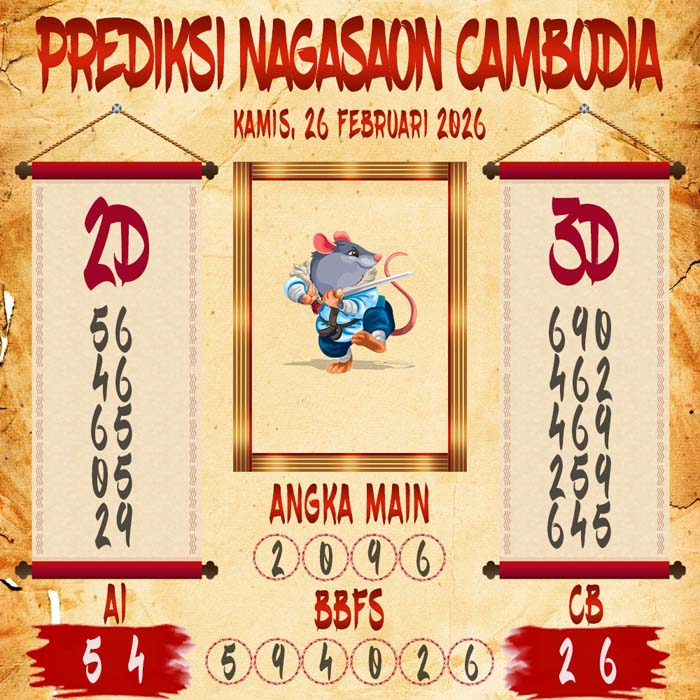 Prediksi Nagasaon Cambodia Kamis 26 Februari 2026