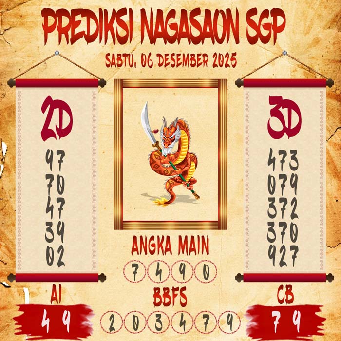 Prediksi Nagasaon SGP Sabtu 6 Desember 2025