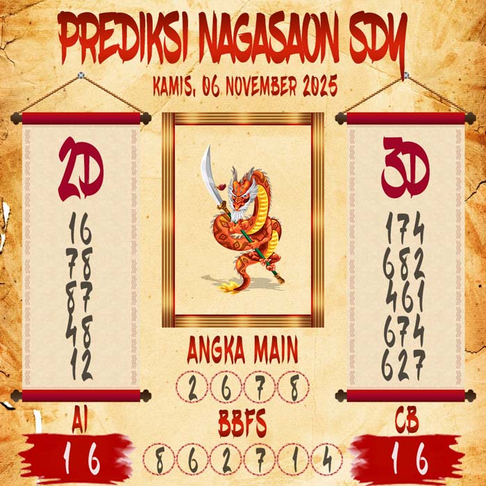 Untuk Mendapatkan bocoran bandar sydney hari ini ataupun live draw sd kitanya kita perlu menampilkan prediksi angka main sdy untuk menebak live draw sydney yang di keluarkan dari live togel sdy dalam data sydney live. Seperti Tampilan diatas, prediksi sydney hari ini di prediksi oleh nagasaon sydney untuk para pecinta prediksi sidney hari ini.