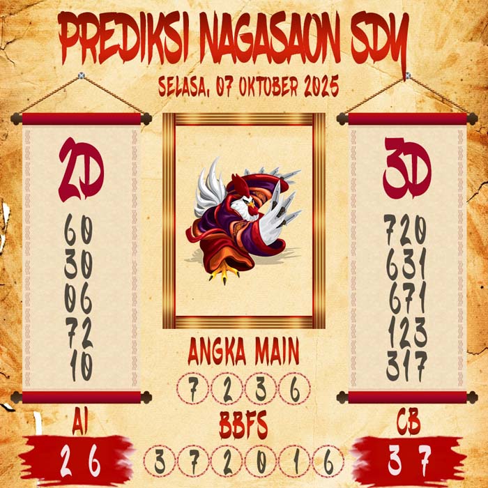 Untuk Mendapatkan bocoran bandar sydney hari ini ataupun live draw sd kitanya kita perlu menampilkan prediksi angka main sdy untuk menebak live draw sydney yang di keluarkan dari live togel sdy dalam data sydney live. Seperti Tampilan diatas, prediksi sydney hari ini di prediksi oleh nagasaon sydney untuk para pecinta prediksi sidney hari ini.