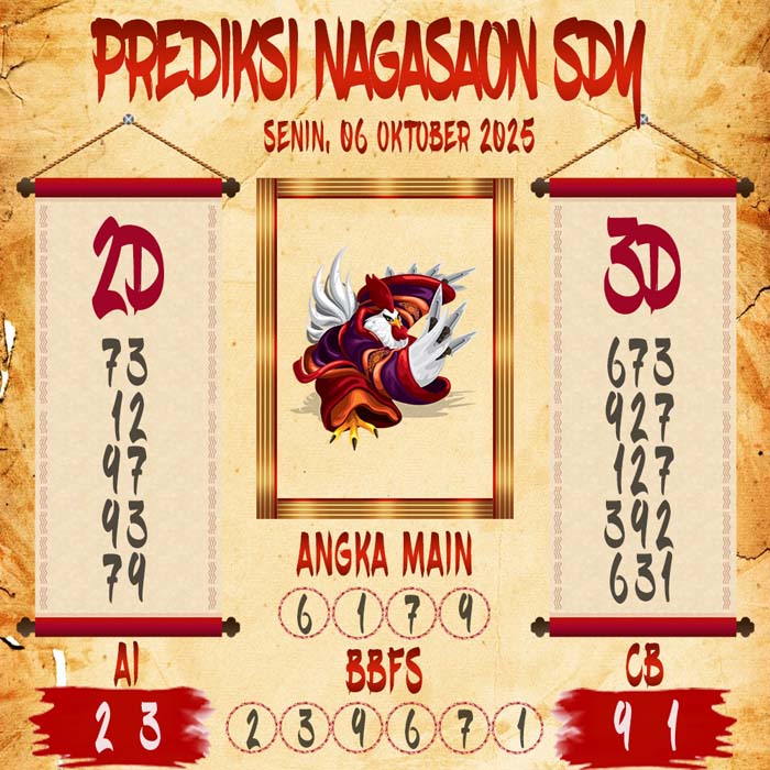 Untuk Mendapatkan bocoran bandar sydney hari ini ataupun live draw sd kitanya kita perlu menampilkan prediksi angka main sdy untuk menebak live draw sydney yang di keluarkan dari live togel sdy dalam data sydney live. Seperti Tampilan diatas, prediksi sydney hari ini di prediksi oleh nagasaon sydney untuk para pecinta prediksi sidney hari ini.